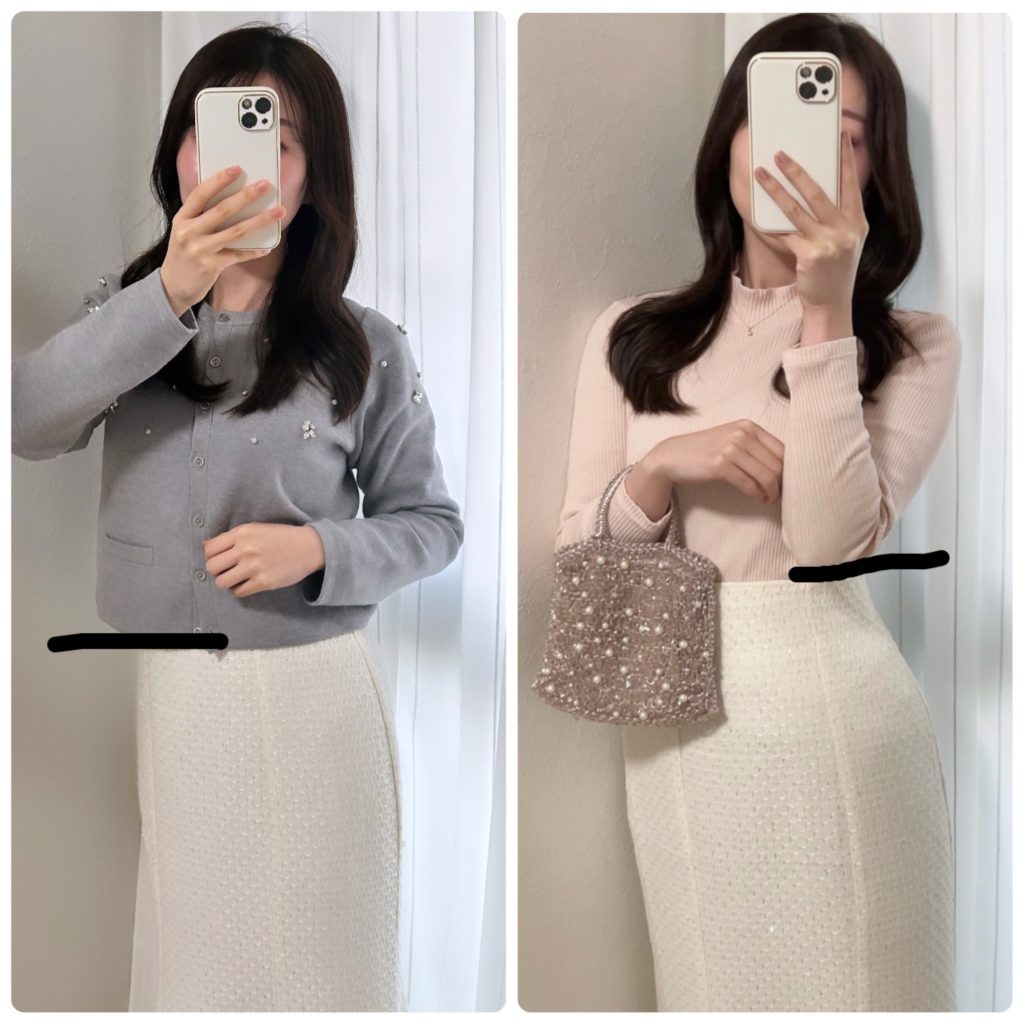 左は丈感が長いため残念ながら、